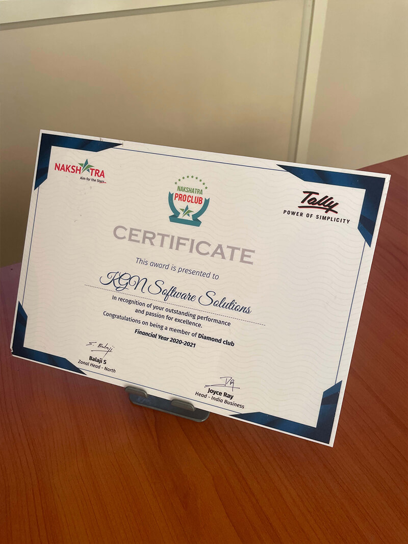 At KGN Software Solutions, we are proud to be a Tally Three-Star Certified Partner serving the Delhi NCR region since 2012. As one of the fastest-growing Tally solutions providers, our team of highly trained professionals and dedicated Business Development Managers (BDMs) is committed to supporting your staff with tailored solutions that align with your business needs.